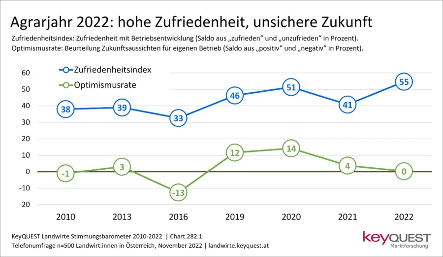 Agrarjahr 2022: hohe Zufriedenheit, aber unsichere Zukunftserwartung unter Österreichs Landwirten