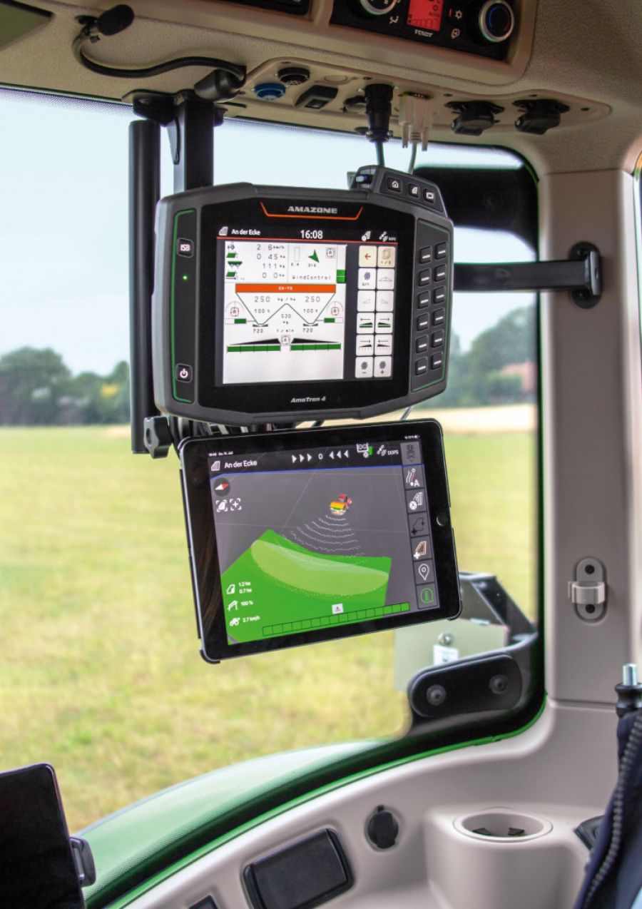 Während die sicherheitsrelevante Maschinenbedienung auf dem AmaTron 4 verbleibt, können GPS-Funktionen parallel über die AmaTron Twin-App bedient werden.