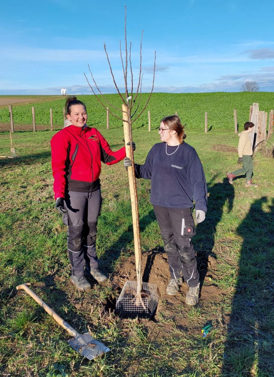 Damit im Sommer auf der Koppel für ausreichend Beschattung gesorgt ist, wurden nun im praktischen Unterricht auch noch Bäume gepflanzt.
