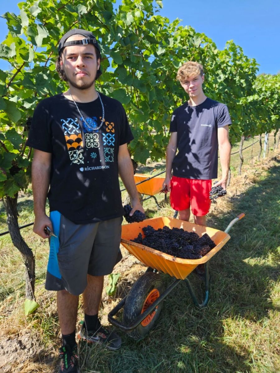 Zwei Monate lang unterstützen Benjamin und Bastien, Schüler eines Collège in Frankreich, die Landwirtschaftliche Fachschule Hollabrunn und insbesondere die Landesweingüter Hollabrunn und Retz bei allen Arbeiten im Weingarten und im Keller.