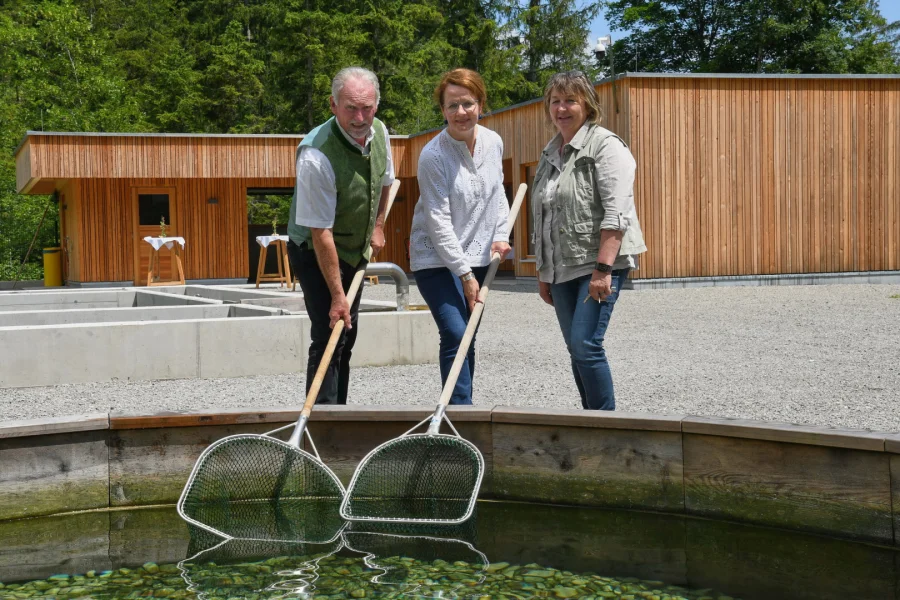 An der Bergbauernschule Hohenlehen im Ybbstal wird die nachhaltige Fischereiwirtschaft kontinuierlich ausgebaut. Nachdem bereits vor zwei Jahren der Naturteich mit Fischen besetzt wurde, ist nun die gesamte Teichanlage mit vier Becken für die Fischaufzucht und einem Gebäude zur Verarbeitung samt Seminarraum in Betrieb gegangen. „Mit der biologischen Fischereianlage wurde eine neue Produktionssparte erschlossen, die durchaus das Potenzial hat, das Einkommen bäuerlicher Betriebe zu stärken. Denn die Nachfrage nach Bio-Produkten und heimischem Bio-Fisch, nimmt kontinuierlich zu“, betont Bildungs-Landesrätin Christiane Teschl-Hofmeister. „Mit der nachhaltigen Fischwirtschaft werden die Schüler mit einem aufstrebenden Zweig der Landwirtschaft vertraut gemacht, der geeignet ist, die Wertschöpfung zu steigern. Die Baukosten von rund 500.000 Euro vom Land Niederösterreich in die neue Fischereianlage sind somit eine gute Investition in die Zukunft“, so Teschl-Hofmeister.
