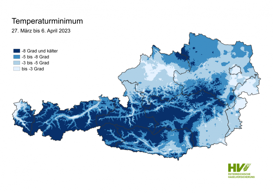 Aufgrund des überdurchschnittlich warmen März ist die Vegetation schon weit vorangeschritten. So ist in der Wachau die Vegetation um mehr als 14 Tage weiter als im 10-jährigen Durchschnitt. Auf der anderen Seite hat sich die kalte Luft aus dem Norden in den vergangenen Tagen durchgesetzt. So gab es in exponierten Lagen im Burgenland, in Niederösterreich und der Steiermark Nächte mit bis zu minus 8°C.