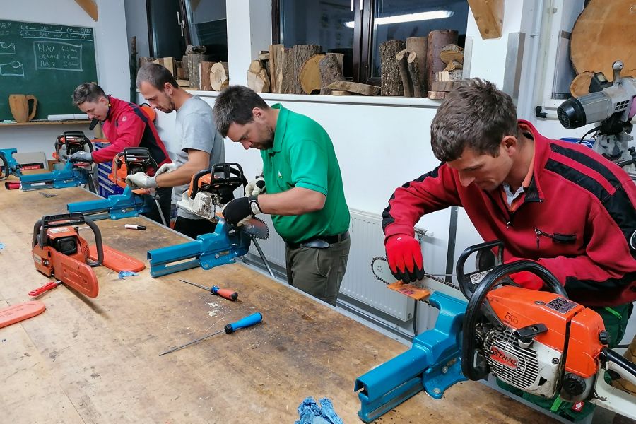Da einige Quereinsteiger dabei waren, wurde mit den Inhalten in Theorie und Praxis von Anfang an begonnen. Nach wenigen Wochen waren sie schon mitten in den Themen Waldpflege und Holzernte. Im ersten Jahr ging es um die Baumarten, die Waldpflege von der Verjüngung über die einzelnen Pflegemaßnahmen, wie Läuterung oder Durchforstung bis hin zur Endnutzung. Auch die Rückung des geernteten Holzes wurde in der Theorie gelehrt und im Wald durchgeführt.