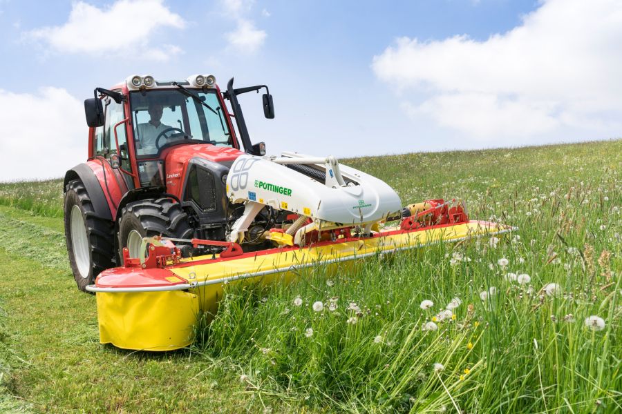 Mit neuen frontalen Augenweiden erntet Grünlandspezialist Pöttinger viel Anerkennung. Er begeistert mit den neuen Master und Pro Frontmähwerks-Modellen . Sie werden über Dreipunkt am Traktor angebaut. Sie sind einfach an jeden Traktor anzuhängen.