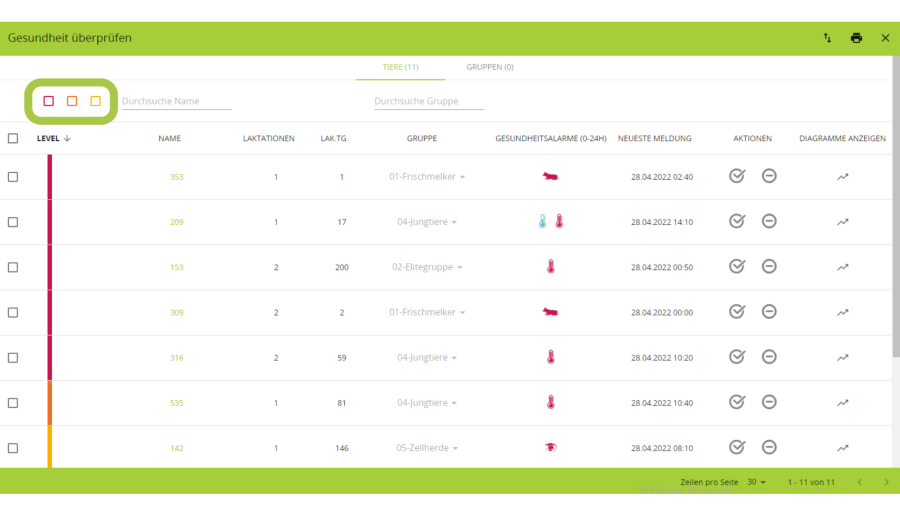 Mit der Funktion „Kategorisierung der Krankheit nach Schweregrad“ können Anwender:innen jetzt noch leichter erkennen, wie schwer eine Kuh erkrankt ist und sehen auf einen Blick, welches Tier besondere Aufmerksamkeit benötigt. Dabei verarbeiten die smaXtec-Algorithmen nicht nur einzelne Vitalwerte – auch Faktoren wie die Alarmkombinationen der letzten 72 Stunden oder die Laktationsphase, in der eine Kuh sich gerade befindet, werden bei der Datenanalyse mit einbezogen. Auffällige Tiere werden automatisch nach hohem, mittlerem oder niedrigem Risiko gereiht.