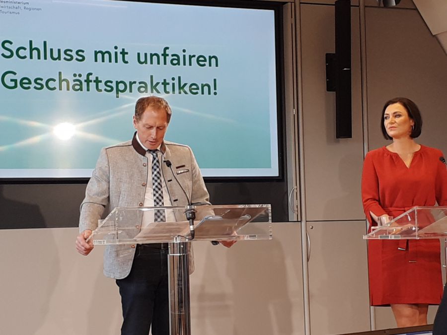 Fortgesetzt deutliche Worte fanden in einer Pressekonferenz Landwirtschaftsministerin Elisabeth Köstinger und der Präsident der Landwirtschaftskammern Österreich Josef Moosbrugger. Die heimischen Familienbetriebe gerieten durch die für sie ungünstigen Strukturen des Handels unter Druck. Bestimmten doch die vier größten Handelshäuser mit ihrer Einkaufspolitik was Sache ist. Sache seien in zunehmendem Ausmaß „espresserische Praktiken“, sagt die Ministerin. „Im ‚Kampf David gegen Goliath‘ stehe ich an der Seite Landwirtschaft, der kleinen Erzeuger und Verarbeiter. Ich werde auch in Zukunft den Finger in die Wunden legen – auch wenn es die Handelsketten stört. Wie mit unseren Bäuerinnen und Bauern teilweise umgegangen wird, ist unwürdig!“ Jüngst veröffentlichte Studien des Wirtschaftsforschungsinstituts belegten den zurückgehenden Anteil der Landwirtschaft an der Wertschöpfungskette bei Lebensmitteln, so Präsident Moosbrugger.
