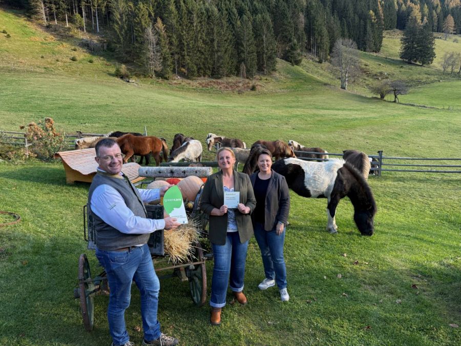 Der Perweinhof von Mathilde und Gerald Muhrer liegt auf 1.000 m Seehöhe in Irdning-Donnersbachtal. Am 29. Oktober 2024 wurde der Betrieb für seine Auszeithof-Angebote mit der Hoftafel ausgezeichnet. Der Familienbetrieb, der auch als „Urlaub am Bauernhof“-Betrieb aktiv ist, hat sein touristisches Konzept nun um gesundheitsfördernde Programme erweitert.