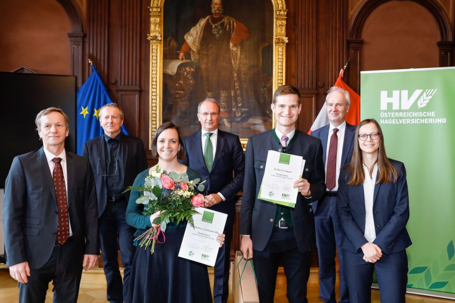 Jährlich werden herausragende wissenschaftliche Arbeiten von der Österreichischen Hagelversicherung prämiert. Heute fand dafür die Preisverleihung an der BOKU statt. Im feierlichen Rahmen überreichten Rektor Hubert Hasenauer, und der Vorstandsvorsitzende der Österreichischen Hagelversicherung Kurt Weinberger, die unter Jung-Akademikern begehrte Auszeichnung an Heidrun Leonhardt, und Martin Kappel. „Ob zunehmende Wetterextreme, bedingt durch den Klimawandel, strukturelle Veränderungen im Agrarsektor oder der rasant fortschreitende Bodenverbrauch: Die Wissenschaft liefert die nötigen Erkenntnisse zu den großen Herausforderungen unserer Zeit. Es ist unser großes Ziel, die Zusammenarbeit von Wissenschaft und Wirtschaft zu fördern, denn ohne Wissenschaft gibt es keine Innovation. Mit Innovationen können wir uns aber auf zukünftige Entwicklungen vorbereiten. Die Vergabe des Förderpreises sehen wir als eine Investition in die Zukunft“, so Weinberger zu den Motiven für die Unterstützung.