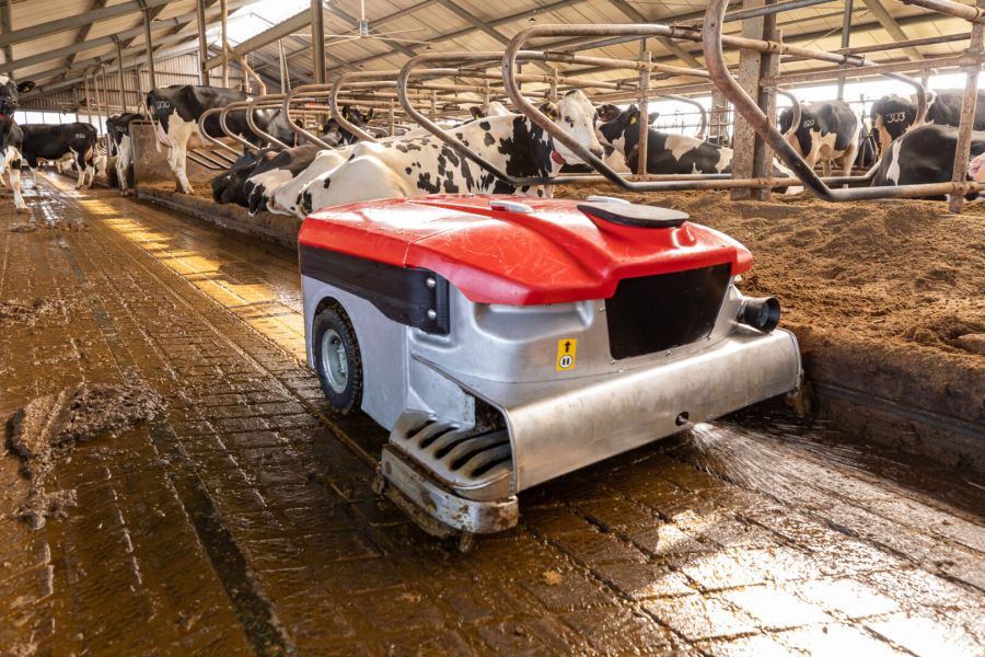 Hindernis und die Kühe können sich sicher durch den Stall bewegen. Durch seine geringe Betriebslautstärke und gleichmäßige, langsame Fahrweise stellt der Collector keinen Störfaktor für die Kühe dar. Sie können problemlos ausweichen, wodurch weniger Verletzungen an den Klauen entstehen.