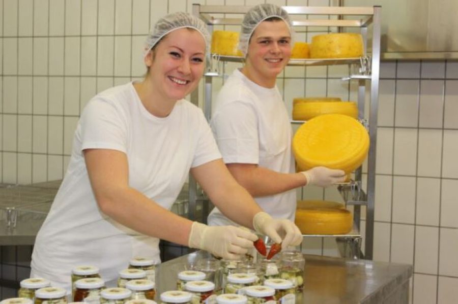 „In kleinen Praxisgruppen lernen die Schüler den gesamten Herstellungsprozess und den Umgang mit den LABU-Käsekesseln. Wir verwenden zusätzlich kleine Kessel, damit jeder richtig mitarbeiten kann“, erklärt Sieder den Einsatz der 30 und 50 Liter LABU-Geräte. „Wir sind sehr zufrieden. Vor allem die Schneidetechnik mit der Käseharfe funktioniert super. Die Käse-Bruchstücke sind gleich groß – das wirkt sich positiv auf die Käsequalität aus“, sagt die Lehrerin. „Unsere Produkte sind überall beliebt – wir verkaufen nicht nur im Hofladen, sondern beliefern auch den Einzelhandel und andere Bauernläden.“