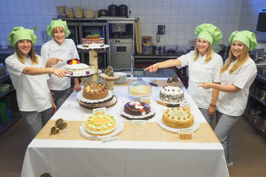 An der Landwirtschaftliche Fachschule (LFS) Warth steht nicht nur die Vermittlung zeitgemäßer Landwirtschaft auf dem Stundenplan, auch die fachgerechte Küchenführung wird hier gelehrt. So ließen die Schülerinnen des Ausbildungszweiges „Betriebs- und Haushaltsmanagement“ im Kochunterricht vor den Herbstferien das Handwerk der Zuckerbäckerei aufleben und stellten kreative Torten hier. Die Köstlichkeiten reichten von Klassikern wie Sachertorte und Schwarzwälder-Kirschtorte, bis zu modernen Variationen wie Naked Cake und Drip Cake. Besonderes Augenmerk wurde auf die regionalen und saisonalen Zutaten der Süßspeisen gelegt. Aber auch die Dekoration und somit das Aussehen der Backwerke waren wichtige Kriterien.