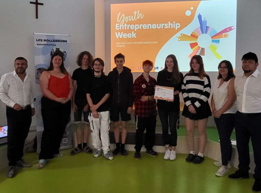 Die Youth Entrepreneurship Week des 4. Jahrgangs Kleintierhaltung der Landwirtschaftlichen Fachschule (LFS) Hollabrunn startete gleich in der ersten Schulwoche an der Pädagogischen Hochschule, wo Konzepte entwickelt wurden, die dann in der LFS vor einem großen Publikum präsentiert wurden. Als Kooperation des Bundesministeriums für Arbeit und Wirtschaft, des Bundesministeriums für Bildung, Wissenschaft und Forschung, der Wirtschaftskammer Österreich sowie von Austrian Startups und IFTE dient die Jungunternehmer*innenwoche als Werkstatt für Jugendliche zur Entwicklung ihrer Ideen und Projekte.