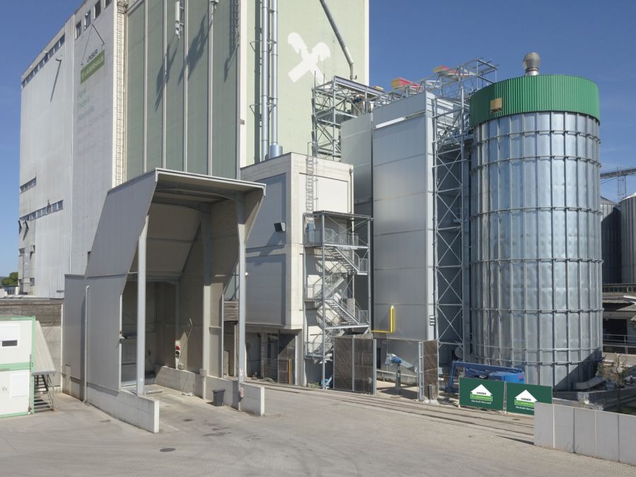 Die beiden modernen Trocknungstürme verarbeiten rund 70 Tonnen Getreide oder Nassmais pro Stunde, wobei die genaue Trocknungszeit des jeweiligen Produktes vollautomatisch, prozessgesteuert geregelt wird. Das Erreichen eines definierten Restwassergehaltes im Korn ist erforderlich, um die Rohstoffe einlagern und in der Mischfutterproduktion weiterverarbeiten zu können. „Die neue Trocknungsanlage arbeitet außerordentlich energieeffizient. Im laufenden Betrieb werden wir mit der neuen Anlage rund ein Drittel an Energiekosten einsparen“, beton Mag. Schenk.