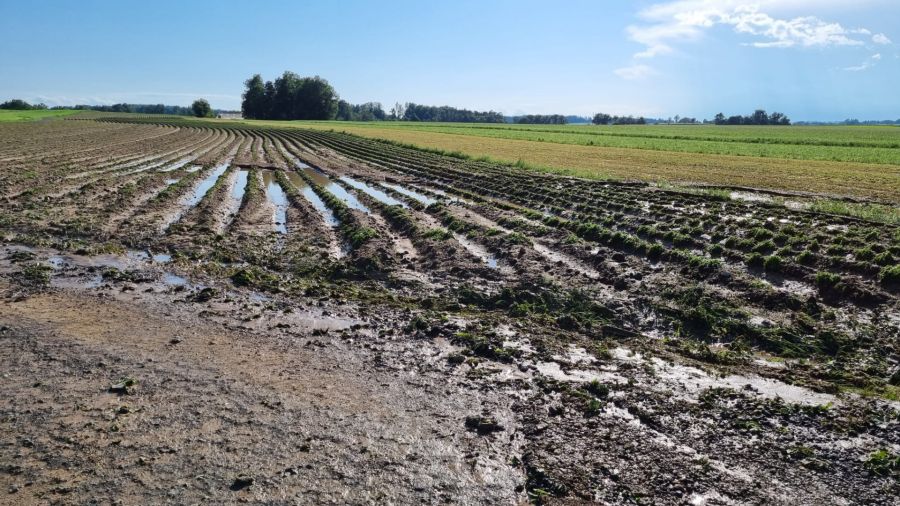 Betroffene Agrarfläche/Gesamtschaden in der Landwirtschaft: