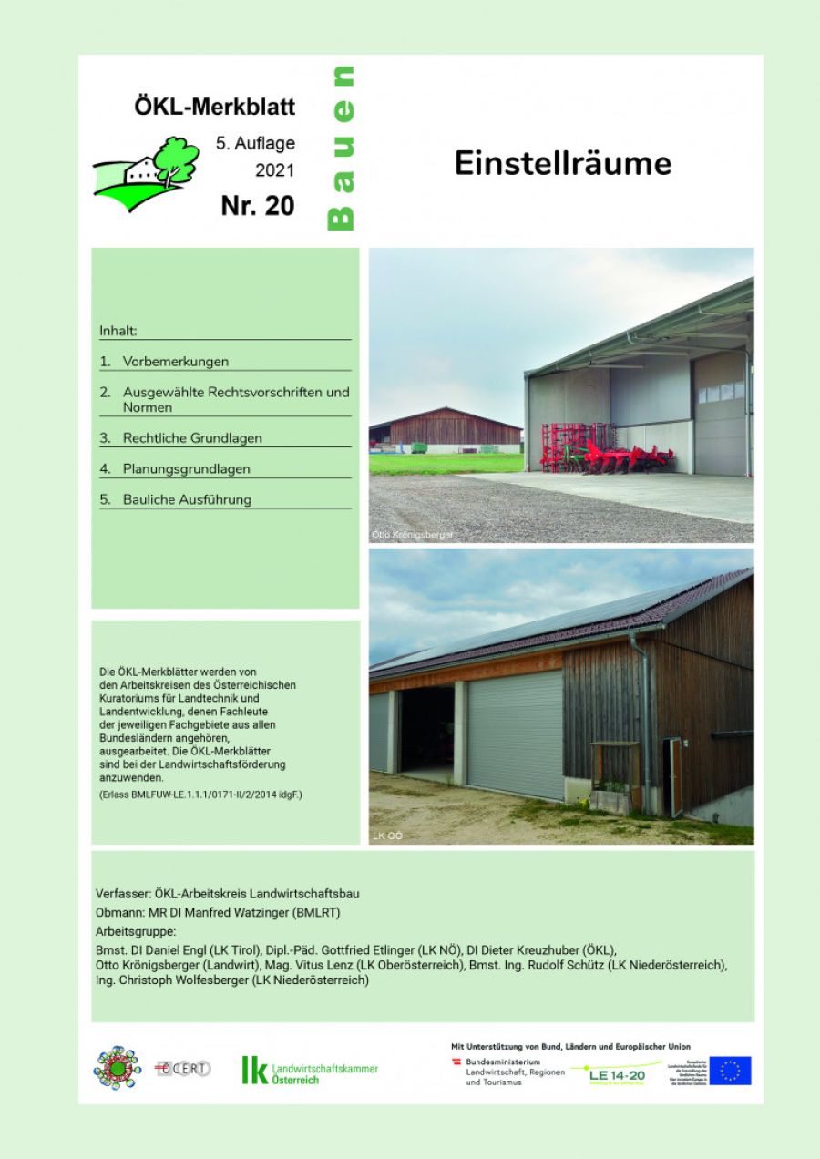Das ÖKL-Merkblatt Nr. 20 zum Thema „Einstellräume“ wurde in der 5. Auflage neu herausgegeben!