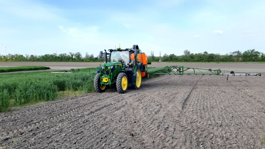 Im praktischen Feldeinsatz wird das Spot-Spraying Gerät von Ecorobotix durch den Robotik-Spezialisten Thomas Rohringer vom Lagerhaus Technik-Center vorgeführt. Mit der Präzisionsspritze werden Pflanzenschutzmittel oder auch Düngemittel selektiv nur dort ausgebracht, wo sie auch benötigt werden.