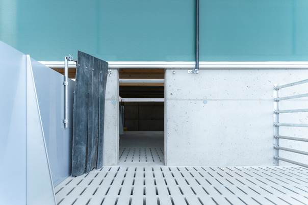 Bei einem PIG PORT Stall muss der Auslauf nach Süden ausgerichtet sein. Durch das Öffnen der Curtains und Steckglasplatten wird der natürliche Luftaustausch ermöglicht und es kommt zu einer Nachtabkühlung, damit kann die Strukturierung in die drei Funktionsbereiche auch im Sommer gewährleistet werden.