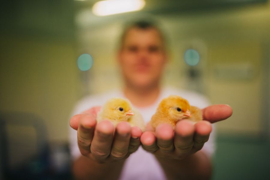 Die Effizienz stellt die Branche auch bei der Aufzucht der Hähne, wie sie in der biologischen Landwirtschaft und bei einigen Programmen des Lebensmitteleinzelhandels betrieben wird, in Frage. Sie setzen aufgrund ihrer Genetik kaum Fleisch an und brauchen viel Energie für recht wenig Output. „Aus Gründen der Nachhaltigkeit ist die Aufzucht mit einem großen Fragezeichen zu versehen“, sagt Benjamin Guggenberger. Wolle man alle erbrüteten Brüder mästen, müsste man dafür die Fläche von 506 Tennisplätzen mit Ställen verbauen. „Wir sehen derzeit keine Notwendigkeit vom eingeschlagenen Weg der Futterküken wegzugehen. Alles andere wäre eine Verschwendung von Ressourcen.“