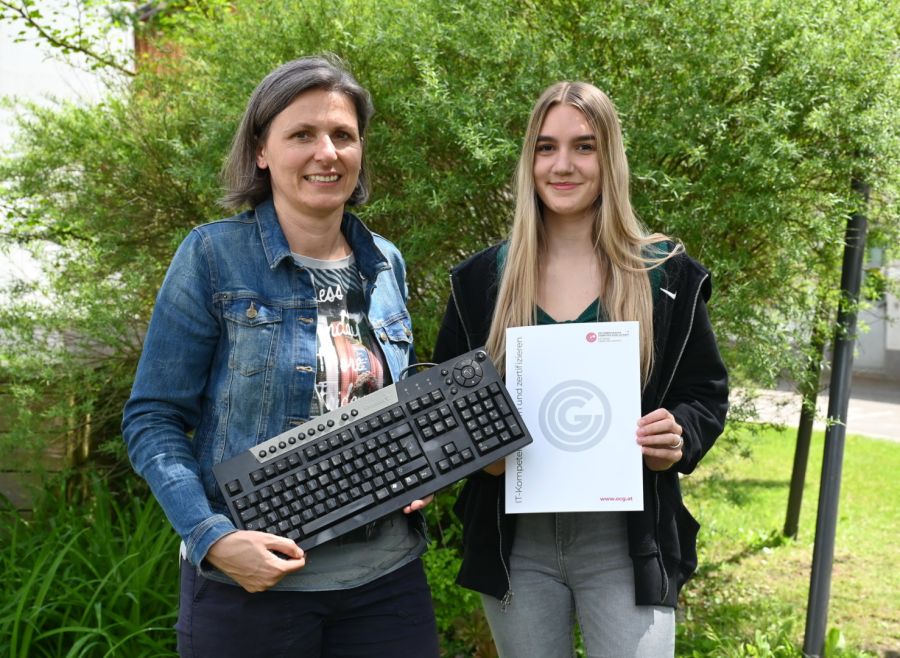 „Dieses international standardisierte Zertifikat wird für das sichere und schnelle Schreiben auf der Computertastatur vergeben. Dabei gilt es mindestens 1.000 Zeichen in 10 Minuten mit einer Fehlerhöchstgrenze nur 0,49 Prozent zu schreiben. Schülerin Anja Scherleitner schaffte sogar mehr als 2.000 Zeichen in 10 Minuten, weshalb sie mit dem Zertifikat ‚Professional‘ ausgezeichnet wurde“, freut sich IT-Fachlehrerin Martina Piribauer.