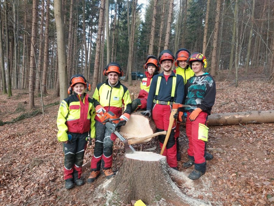 Insbesondere das fachgerechte Arbeiten mit der Motorsäge stand dabei im Vordergrund. Auch deren professionelle Wartung wurde erlernt. Außerdem wurden Übungen am Spannungssimulator, mit dem Forstkran und der Seilwinde durchgeführt. Zu guter Letzt durften die Schülerinnen und Schüler bei der Starkholzernte hautnah dabei sein, selbst die Fällung durchführen und Holzsegmente ausformen. Neben dem praktischen Tun wurde darüber hinaus einem Heizwerk, einem Holzplattenwerk und einem Landtechnikunternehmen ein Besuch abgestattet.