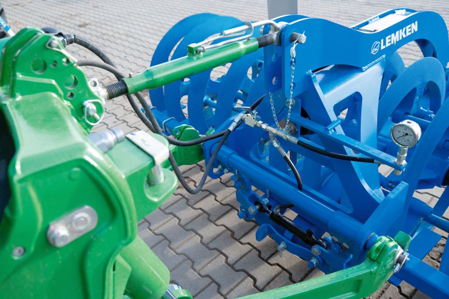 Zur Rückverfestigung oder Ballastierung des Traktors bei ausgehobener Säkombination setzen Landwirte vermehrt Packer im Frontanbau ein. Ein beliebtes Modell ist der Frontpacker VarioPack, den Lemken jetzt in einer überarbeiteten Version mit neuer Lenkcharakteristik vorstellt. Für den Einsatz in hügeligem Gelände oder mit GPS-gesteuerten Traktoren ist der Packer mit einer hydraulisch einstellbaren Lenkempfindlichkeit verfügbar, die eine sichere Anschlussfahrt gewährleistet. Der spurtreue Lauf des Packers entlastet den Fahrer, der somit in schwierigen Bedingungen nicht mehr gegenlenken muss.