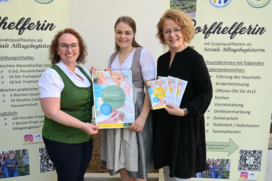 Die Landwirtschaftliche Fachschule (LFS) Gießhübl ist der einzige Standort in Niederösterreich, wo die Ausbildung zur Betriebs- und Dorfhilfe stattfindet. Ab diesem Schuljahr ist die Zusatzqualifikation „Soziale Alltagsbegleitung“ in diesem Lehrgang integriert.