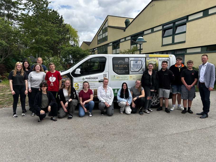 Der Landwirtschaftlichen Fachschule Hollabrunn ist es in Zusammenarbeit mit der Firma Regenbogen gelungen, mit Hilfe der Wirtschaftstreibenden vor Ort ihren Fuhrpark zu erweitern. So konnte ein 9-Sitzer-Bus angeschafft werden, der insbesondere im praktischen Unterricht zum Einsatz kommt.