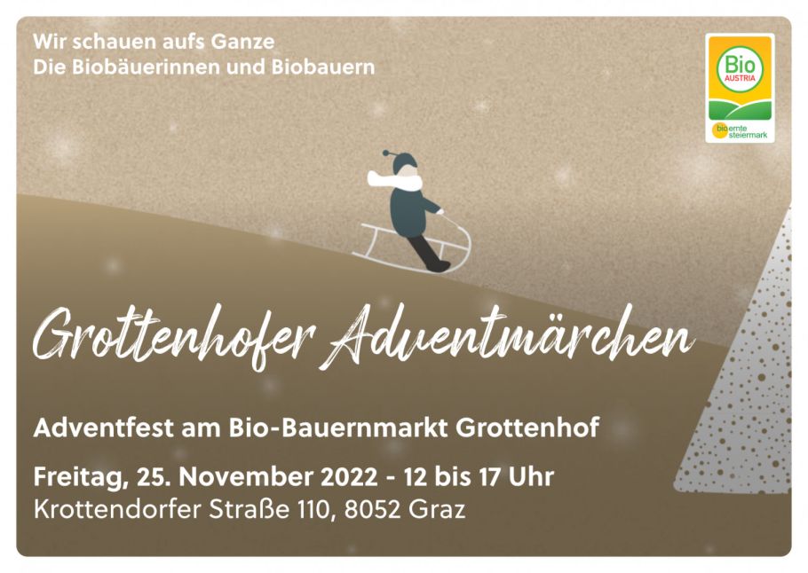 Am 25. November 2022 verwandelt sich der Bio-Bauernmarkt am Gelände der landwirtschaftlichen Fachschule Grottenhof in Graz von 12 bis 17 Uhr in ein stimmungsvolles Adventmärchen. Das Sortiment des Bio-Bauernmarkts wird dabei um Bio-Kulinarik und weihnachtliche Spezialitäten erweitert. Neben dem Genuss sorgt ein abwechslungsreiches...