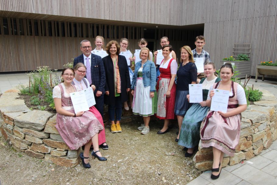 Neun Schülerinnen und Schüler des 2. Jahrganges des Ausbildungszweiges Landwirtschaft mit Lebensmitteltechnik der LFS Pyhra absolvierten die Prüfung zum diplomierten Käsekenner bzw. zur diplomierten Käsekennerin.