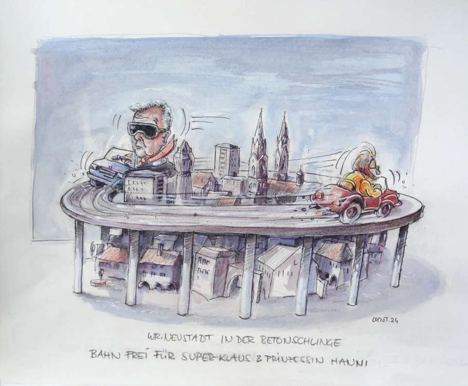 Das Land NÖ greift bei einer Kampagne zur Ostumfahrung in die psychologische Trickkiste. Der Psychiater Martin Omasits bringt mit Cartoons „den Wahnsinn dieser geplanten Betonschlinge“ auf den Punkt.
