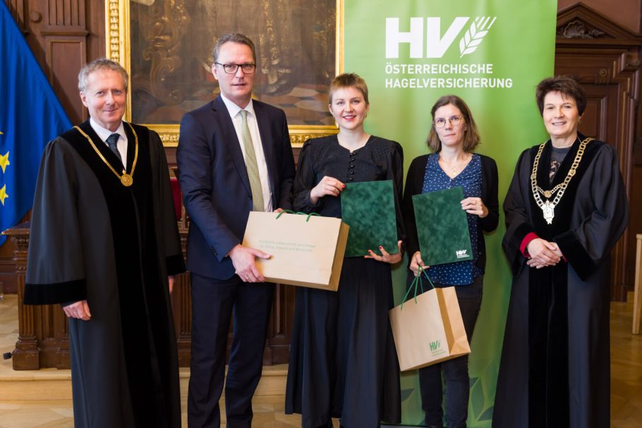 Die Hagelversicherung vergibt jährlich an der BOKU den Förderpreis für exzellente wissenschaftliche Arbeiten. In diesem Jahr wurde der Preis an Katharina Falkner und Lisa Maria Rienesl vergeben. Im feierlichen Rahmen überreichten die Rektorin der Nachhaltigkeitsuniversität Eva Schulev-Steindl, LL.M., und Reinhard Kern,...