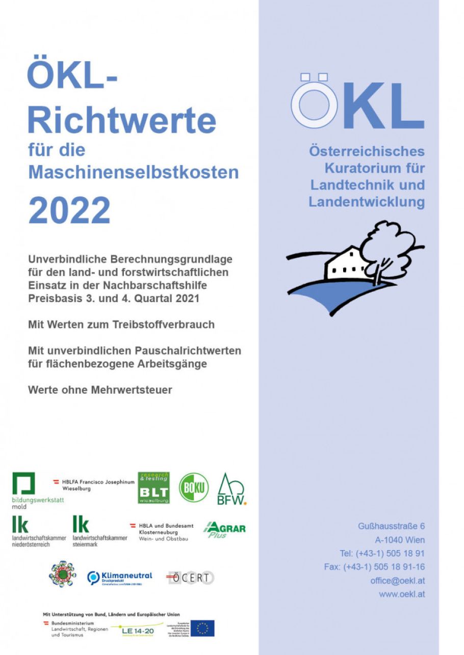 ÖKL-Richtwerte für Maschinenselbstkosten 2022