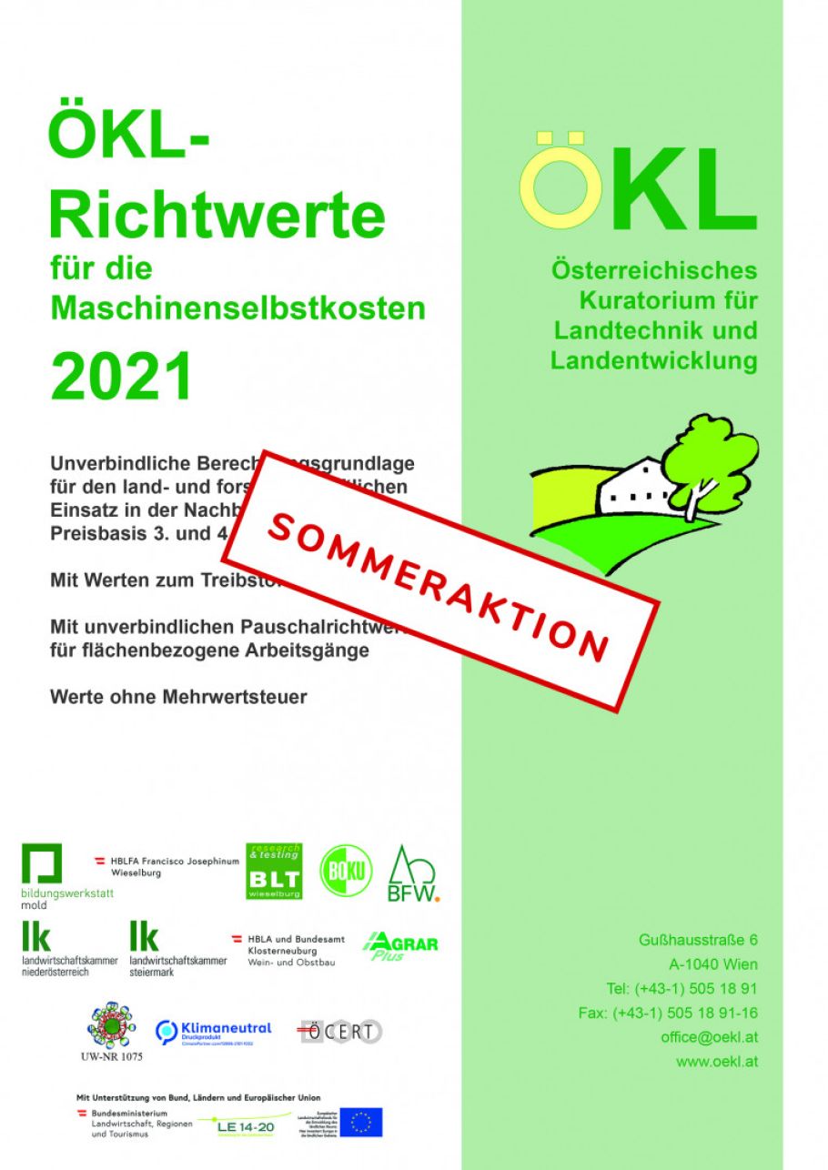 Die ÖKL-Richtwerte für die Maschinenselbstkosten für das Jahr 2022 mit aktualisierten Werten sind erhältlich!