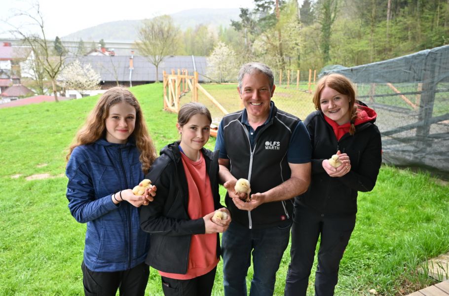 Die Schülerinnen und Schüler der Fachschule Warth haben sich ganz der mobilen Hühnerhaltung verschrieben. Dreißig Weidehühner werden in Kürze auf den grünen Wiesen der Schule für ein fröhliches Gurren und Gackern sorgen. Derzeit befinden sie sich noch im schützenden Stall, wo sie bei konstanter Temperatur aufwachsen.