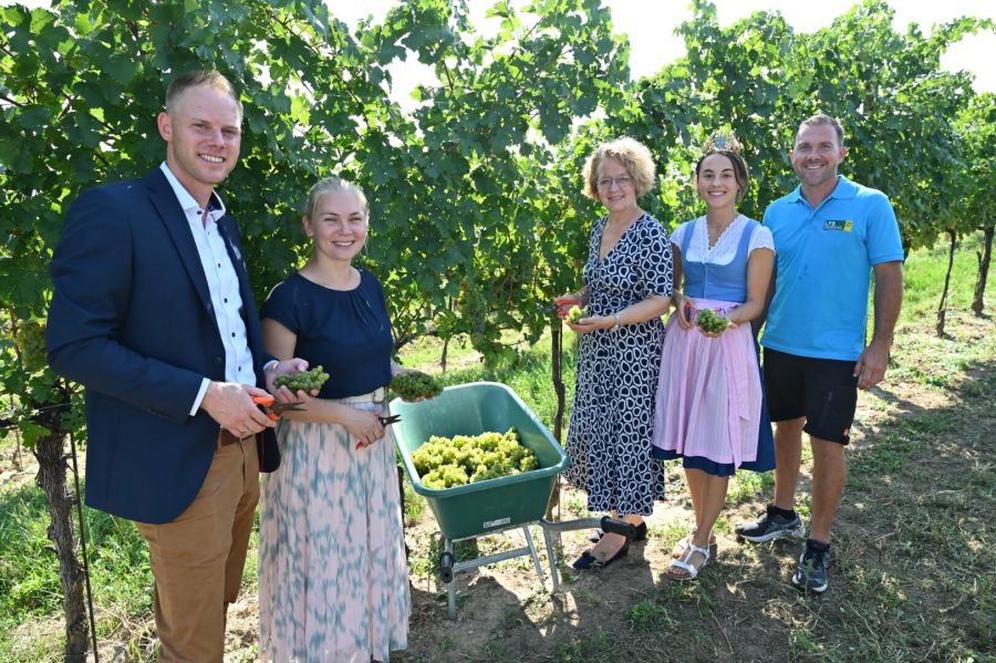 An den vier NÖ Landesweingüter Hollabrunn, Krems, Mistelbach und Retz ist die Weinernte fast abgeschlossen. Der Großteil der Trauben konnte noch vor den Unwetterereignissen geerntet werden. Sofern möglich, findet jetzt noch die abschließende Ernte statt. Im Weingarten der Fachschule Hollabrunn fand vor kurzem die Weinlese für den diesjährigen Wein der NÖ Landesweintaufe im Beisein von Bildungs-Landesrätin Christiane Teschl-Hofmeister statt.