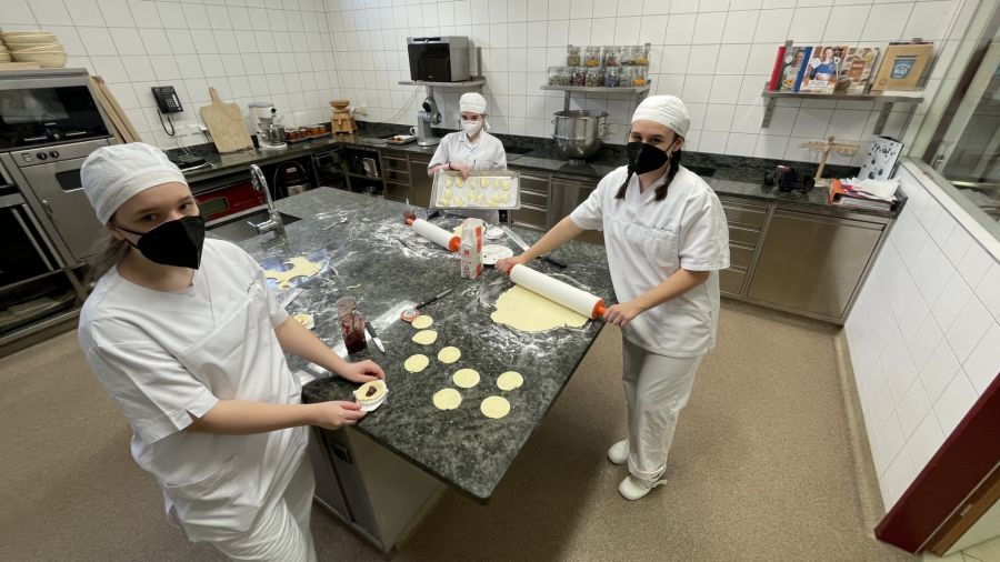 „Regionale und frische Lebensmittel werden durch die Corona-Krise so wertgeschätzt wie noch nie zuvor. Auch gekocht wird deutlich mehr als früher. Um diese positive Haltung bei den Schülerinnen und Schülern zu festigen, starteten wir im Kochunterricht ein Projekt zur nachhaltigen Versorgung mit regionalen Lebensmitteln“, betont Fachlehrerin Elisabeth Mayer-Reithofer. „Dabei werden überwiegend selbst hergestellte Produkte aus dem Schulbetrieb verwendet. Diesmal wurden in der Lehrküche rund 300 Topfentaschen für die gesamte Schulbelegschaft hergestellt. Dabei erzeugte man den Topfen aus schuleigener Milch und die Marmelade als Füllung kommt aus dem Schulgarten“, so Mayer-Reithofer.