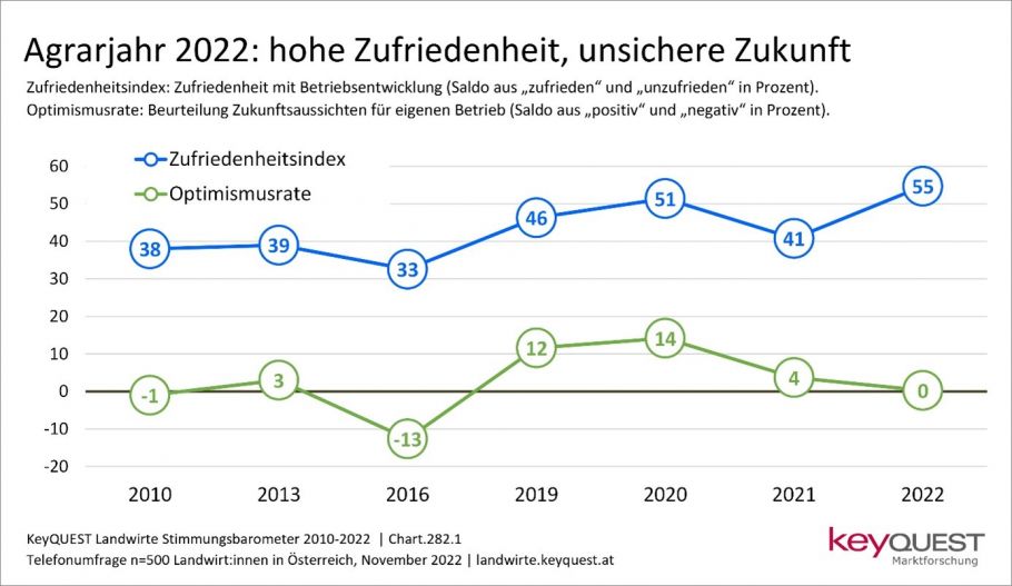 Agrarjahr 2022: hohe Zufriedenheit, aber unsichere Zukunftserwartung unter Österreichs Landwirten