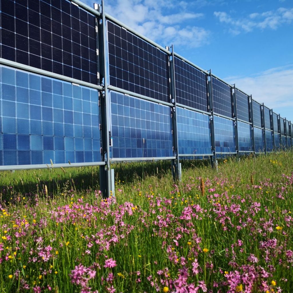 Der Solarzaun / AgriPV ist nicht nur in der Lage genug Strom zur Abdeckung des Bedarfs im Privathaushalt oder der Landwirtschat zu generieren, sondern bietet auch einen pflegeleichten und witterungsbeständigen Ersatz für Einfriedungen, Sichtschutz, Heckenersatz, zur Weideviehhaltung oder Doppelnutzung der Agrarflächen. Durch die beidseitigen Photovoltaikmodule optimiert der Solarzaun die Stromproduktion. Es wird eine hocheffiziente Solarzelle in einen Zaun integriert, und diese kann von beiden Seiten Strom erzeugen, zu allen Tages- und Jahreszeiten. So liegt der Wirkungsgrad auf der Vorderseite bei 99 % und auf der Rückseite bei 85 %. Dadurch wird die Energiegewinnung zu herkömmlichen Paneelen nicht verschlechtert. Es ist egal, ob die Modulfläche nach Süd-Nord (Jahresstromertrag 900 bis 1050 kWh/ kWp) oder Ost-West (Jahresstromertrag 1000 bis 1290 kWh) zeigt, die Stromproduktion läuft auch in der nicht direkt beschienenen Seite.