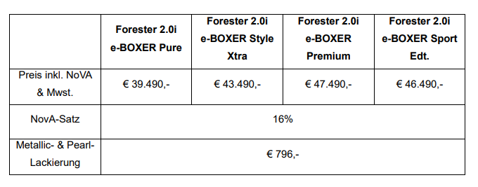 In Österreich ist der neue Subaru Forester voraussichtlich ab Mitte Januar in den Ausstattungsvarianten „Pure“, „Style Xtra“, „Premium“ und als „Sport Edition“ erhältlich.