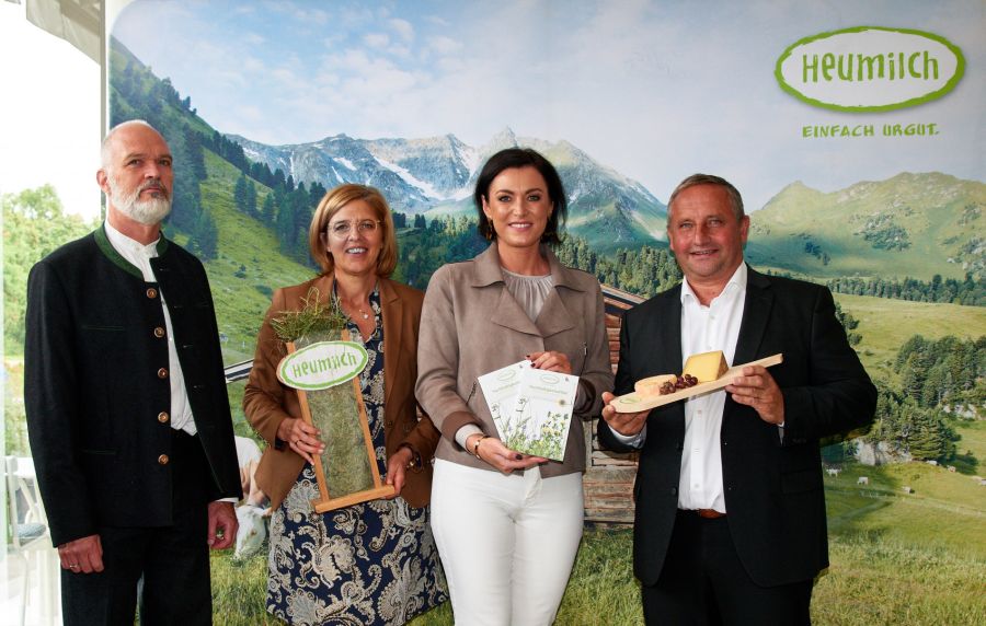 Auch Landwirtschaftsministerin Elisabeth Köstinger konnte bei dieser eher der erfreulichen Terminkategorie zuzuordnenden Veranstaltung dabei sein. Schließlich schaffen die Heumilchbauern, wovon viele Lebensmittelerzeuger nur träumen können. Ihr Produkt Heumilch und alle daraus erzeugten Milchprodukte erzielen einen höheren Preis als herkömmliche Milch. Der Zauberstab, der die Einkommen der Landwirte in Zukunft stabilisieren soll, lautet Wertschöpfung. Heumilch verkauft sich so gut, das sie zu 60% ins Ausland als höherpreisige Molkereiprodukte verkauft werden kann. Jahrzehntelanges, konsequentes Bemühen, Qualität hoch zu halten und dafür die Werbetrommel zu rühren, trägt Früchte. Aber die Heumilchbauern wollen sich nicht auf den Lorbeeren der Vergangenheit ausruhen. Der Klimawandel und dessen Abwendung beginnt immer mehr die Kaufentscheidungen der Konsumenten zu beeinflussen.