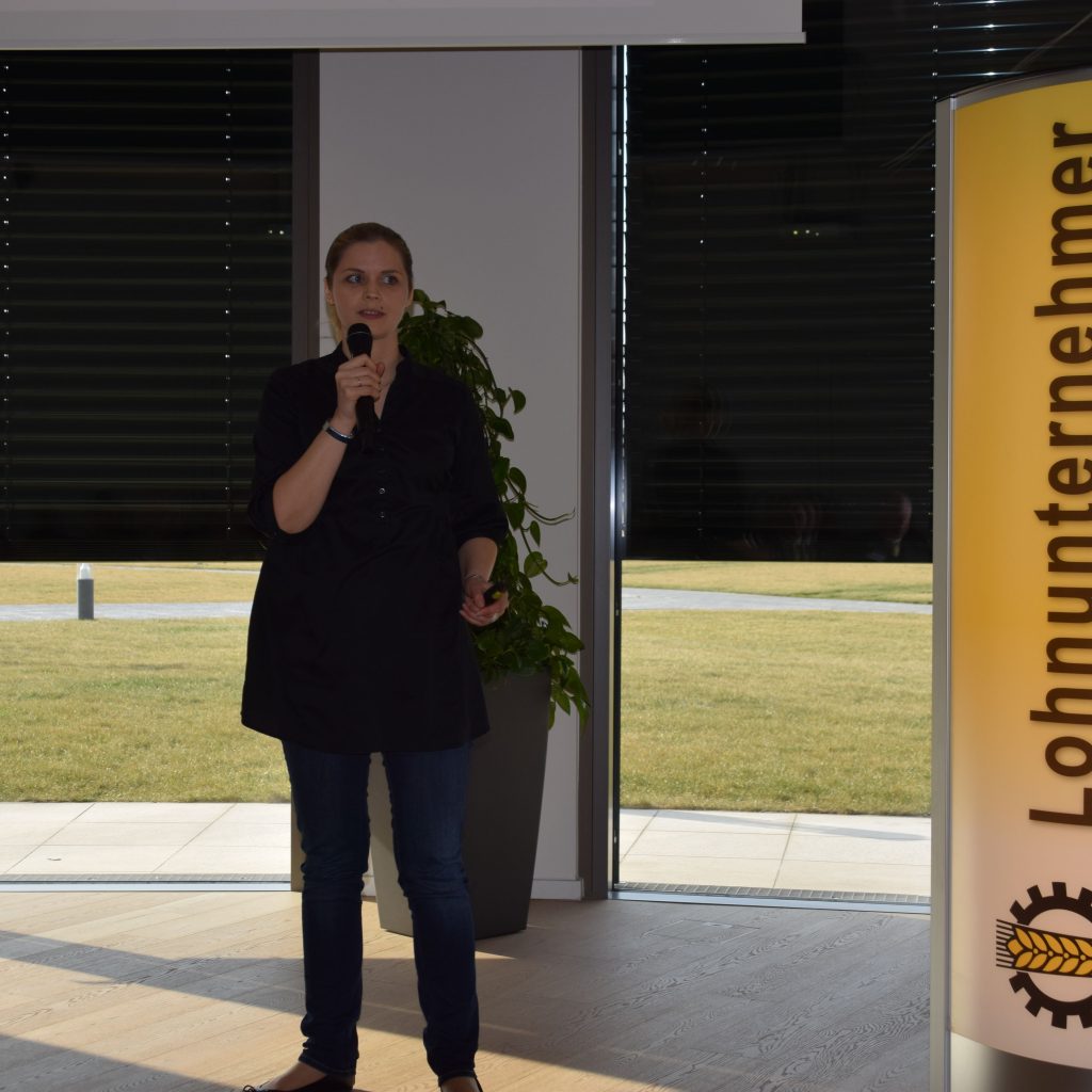 Claudia Zinner, Unternehmerin aus Zwettl im Waldviertel führt eine Kommunikationsagentur für die Landwirtschaft. Sie referierte zum Thema „Wir müssen Landwirtschaft kommunizieren.“ Das gilt auch für Lohnunternehmer mit ihren Dienstleistungen. Im ersten Abschnitt ging sie auf die radikalen Veränderungen in der Gesellschaft ein. Dazu zählen: Globalisierung und Vernetzung, Kritische Öffentlichkeit, Demografischer Wandel, Fortschreitende Digitalisierung, Volatilität der Märkte, Nachhaltigkeitsdebatte und Vielfalt an Kulturen und Lebensentwürfen. Nach ihren Ausführungen liegt in der Kommunikation die Wertschöpfung der Zukunft. Die praktizierende Landwirtschaft ist beinahe vollständig aus den Köpfen der Menschen verschwunden. Wir mussten noch nie die Landwirtschaft kommunizieren, denn das war bisher selbstverständlich. Der stattfindende Wandel fordert ganz stark die Einbindung der Gesellschaft in landwirtschaftliche Abläufe, wie die Berücksichtigung des Wetters oder die Abhängigkeit von der Natur.