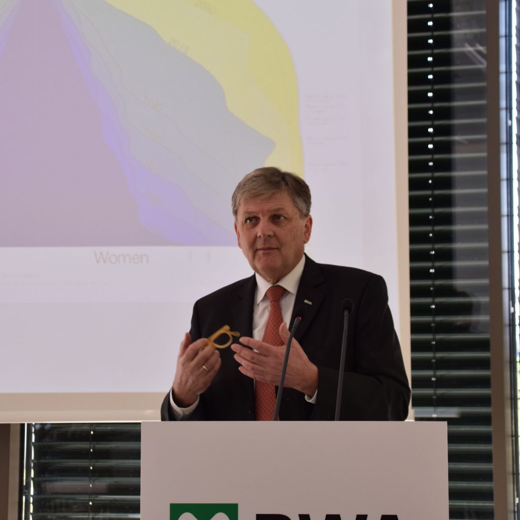 Generaldirektor DI Reinhard Wolf spannte einen sehr weiten Bogen über die globalen Trends und Innovationen. Dazu zählen: Klimawandel, Bevölkerungsentwicklung, Digitalisierung und Digitale Transformation.