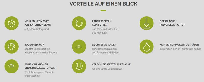 Hier die Vorteile unserer Roundgrip Metallräder für Motormäher und Geräteträger auf einen Blick